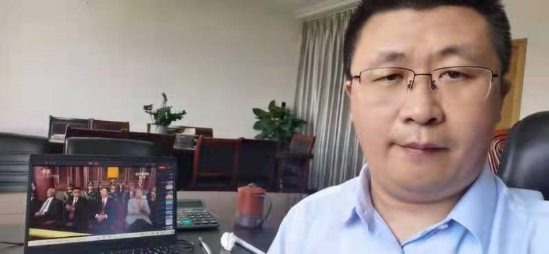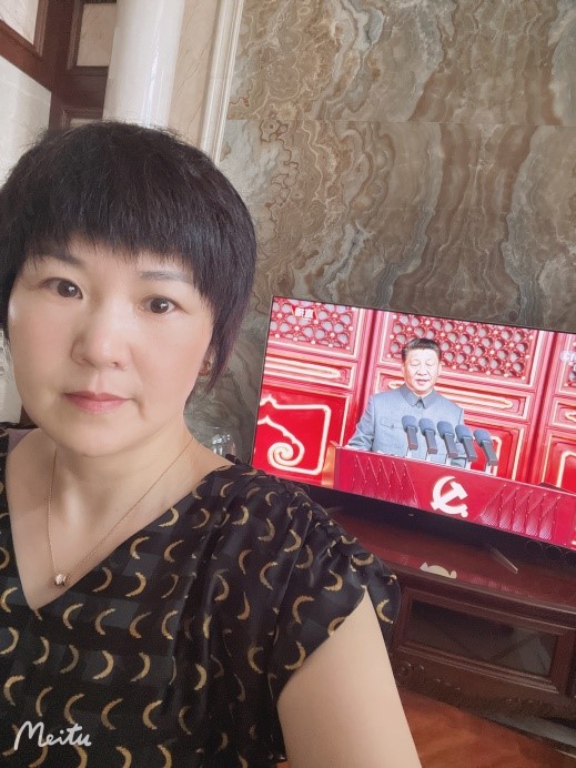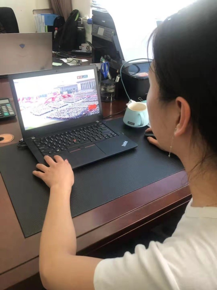 出差在外的党员同志不忘收看庆典盛况,与党同欢,与国同庆!