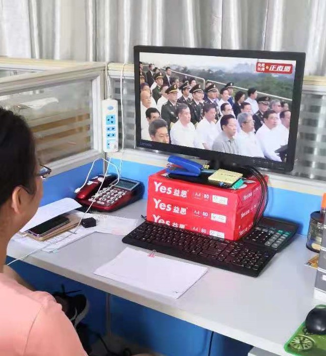 党员同志坚守一线,立足自己的工作岗位,认真聆听习总书记重要要讲话。
