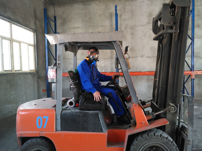 2017年5月27日15:00分,染料连云港分公司仓库组织叉车工进行危化品保险粉转移应急处置训练,模拟货架上保险粉发生自燃,需及时转移的应急处置训练。保险粉发生自燃会产生有毒、强烈刺激性的二氧化硫气体,在进入库房内进行转移时必须佩戴正压式空气呼吸器,同时还要操作叉车,加强应急处置训练是非常必要的也是必须的,本次仓库组织叉车工进行应急处置训练要求所有叉车操作人员都能够熟练掌握该项训练技能,做到防范于未然,分公司领导非常重视专门配备了2套便携式正压式空气呼吸器,在装备上给予保障。仓库将不定期对叉车工进行类似的应急处置训练。