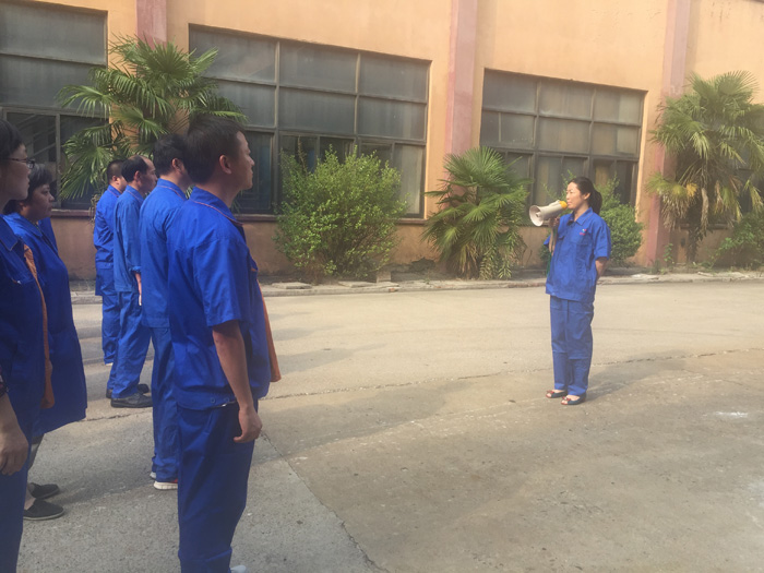 一切准备工作就绪,演练正式开始。16:00整警铃响起,全体员工立刻放下手中任何工作,迅速而有序地向一楼大门疏散。撤离过程中,员工用毛巾、手帕等捂住口鼻,防止烟雾或有害气体吸入体内。迅速撤出大楼后,直奔集合地点,由小组长清点人数,查看人员撤离情况,并由部门负责人将^终结果汇报总指挥。与此同时,由搜救人员佩戴防护面具等相关保护措施,进楼搜寻滞留或受伤人员,确保每位员工安全离开。^后,由品管部部长刘丽对此次演练作点评,总指挥钱中方作演练总结,此次演练取得圆满成功。