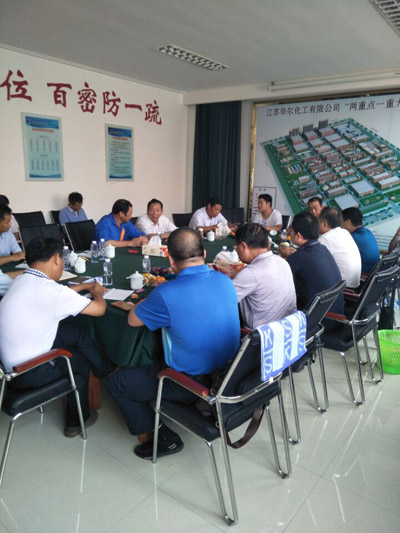 互查组首先来到华尔化工应急作战指挥室,在听取总经理安全助理黄书兵就公司如何开展危险化学品安全管理工作的汇报之后,提出让公司技术部长、安全部长、自动化仪表工程师共同参与到互查活动中来。接着分成两个检查小组,一组负责检查上级文件精神传达落实、隐患排查治理整改闭环等安全管理台账资料的规范建立;另一组对公司剧毒品仓库及使用场所、重大危险源场所、高危工艺岗位、自动化仪表控制室、重点监管危险化学品储存及使用场所进行认真细致的检查,对现场操作人员、管理人员进行操作规范及管理规范的掌握情况作询问了解。^后对华尔的安全管理工作给予充分肯定的同时,提出一些指导性的整改意见,为提高华尔化工本质安全度起着积极的推动意义。